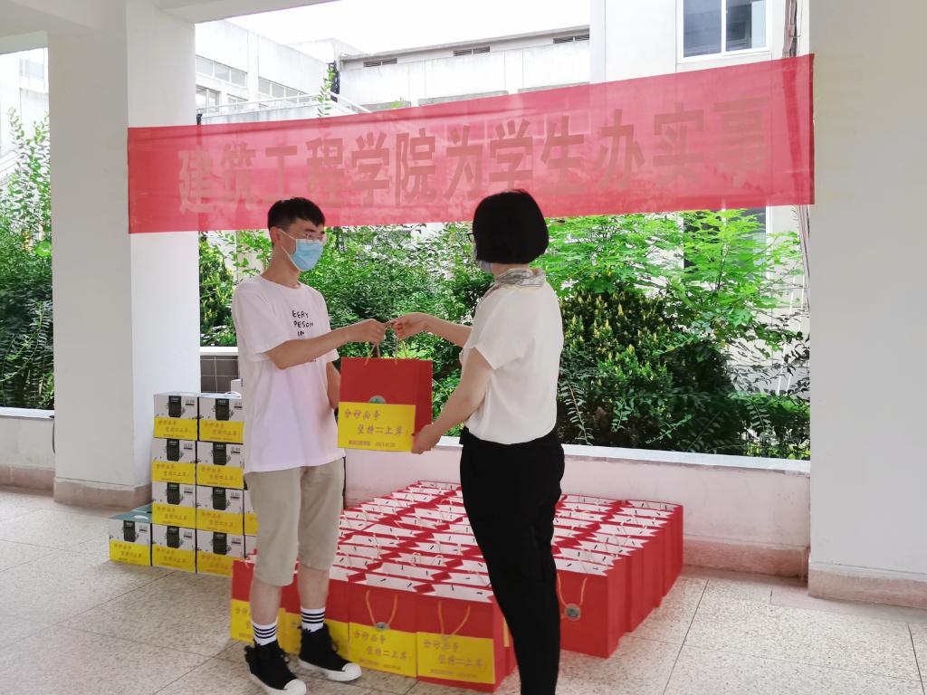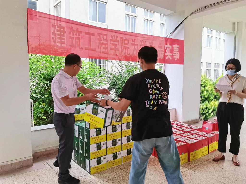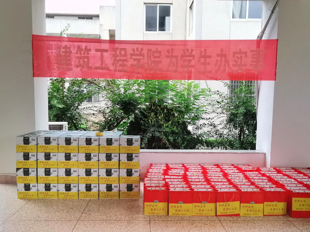 酷暑盛夏,烈日炎炎,正值暑假,建筑工程学院近三百名学生留校备战研究生考试。结合目前新冠疫情防控形势,为保障学生的安全和健康,及时把学院的关怀送给坚守在校园的学生,建筑工程学院开展了为学生办实事——2021年暑期送关怀活动。