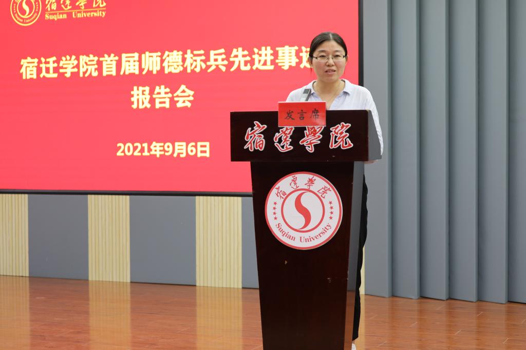 在第37个教师节即将来临之际,9月6日下午,宿迁学院举行首届师德标兵先进事迹报告会。建筑工程学院马静老师作了“坚持着 幸福着”的主题演讲,她深情讲述了自己的成长经历、取得的成绩以及从教感悟,表达了“赓续百年初心 担当育人使命”的情怀。宿迁学院2021年7月评选出校首届师德标兵四名老师,我院马静老师光荣入选。