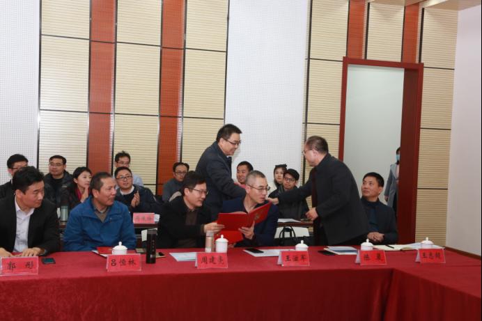 随后,潘志明副校长向工程研究中心技术委员会主任东南大学 郭彤教授和委员颁发聘书。校科技处处长韩军与北京构力科技有限公司、宿迁市城投远大建筑科技有限公司、江苏力引建材科技股份有限公司、江苏中科君达物联网股份有限公司、宿迁学院产业技术研究院等5家共建企业签订共建协议。工程研究中心副主任孙传智代表工程研究中心与江苏省建筑设计研究院股份有限公司、中交一公局桥隧工程有限公司、宿迁市城投远大建筑科技有限公司等3家企业签订120万元横向项目合同。建筑工程学院党委书记陈胜雷代表建筑工程学院接受宿迁市城投远大建筑科技有限公司、北京构力科技有限公司等2家企业70万元软件和构件的捐赠。