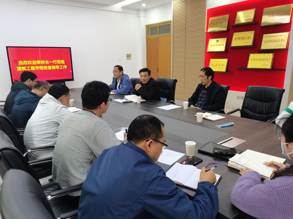 4月29日下午,副校长季赛带领保卫处处长浦云龙、学生处处长许立春和校团委书记葛崇勋,赴建筑工程学院调研指导疫情防控与学生工作。院党委书记郭振宇、副院长孙小荣和全体在校辅导员参会。