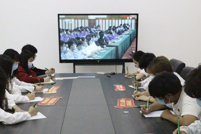 辅导员刘小倩、宋政凯两位老师带领学院团学干部代表在会议室及各团支部团员青年在宿舍收看大会盛况,深入学习领会习近平总书记重要讲话精神。
