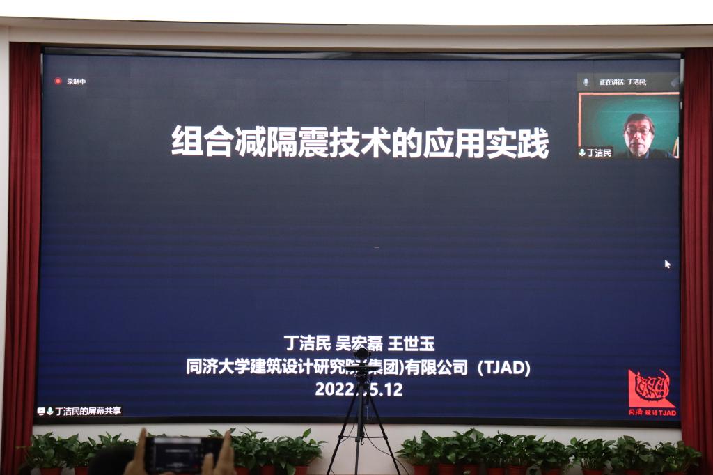 全国工程勘察设计大师、英国皇家资深注册结构工程师、同济大学建筑设计研究院(集团)有限公司总工程师、同济大学土木学院结构工程专业博士生导师丁洁民大师作了题为“组合减隔震技术的应用实践”的学术报告,结合4个典型工程实例深入地介绍了组合减隔震技术的设计思路、应用方式、耗能效果以及实践应用情况。