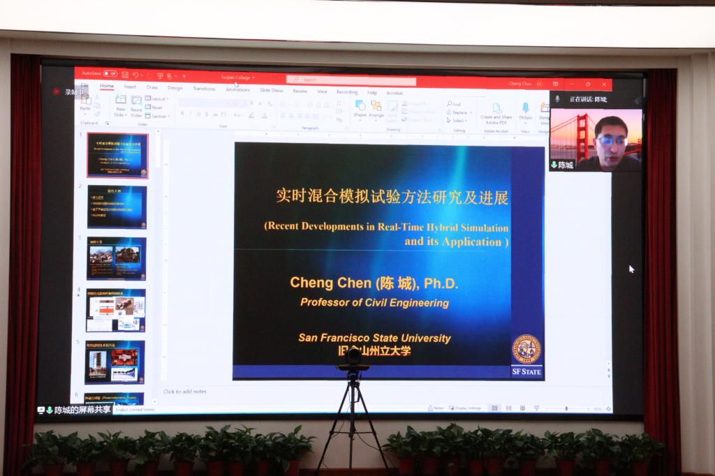 美国加利福尼亚州旧金山州立大学工程学院陈城教授作了题为“实时混合模拟试验方法研究及进展”的学术报告,介绍了实时混合模拟试验技术中结合元模型技术和顺序取样方法,通过有限次数试验得到结构在不确定性下的响应,对结构不确定性进行敏感心和量化分析,从而为结构设计,优化和性能评估提供有力的技术支持。