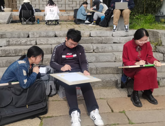 由于突发疫情的影响,此次实习安排在校内进行,由指导教师带领学生参观校内的园林景观,并以写生为主。同学们始终能够保持积极主动,认真踏实的学习态度对待实习。除此之外,以杨雨、周力行为代表的任课老师对参与写生的每一位同学进行了无微不至的悉心指导,确保其保质保量完成写生任务。而见惯了校外山水花木的同学们,在也写生过程中发现了不一样的校园风景,并将风景定格在了自己的画面中。
