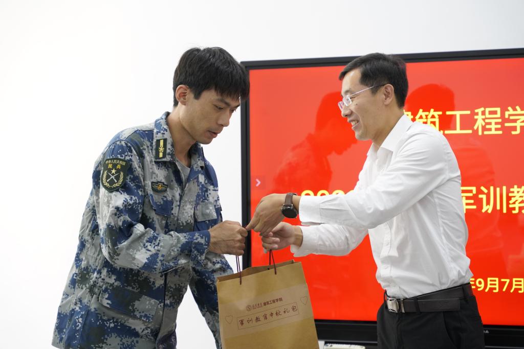 恰逢中秋佳节来临之际,为使坚守在军训场上无私付出的教官们能够度过一个温馨难忘的节日,院党委副书记任晨阳为学生教官们发放了中秋慰问品,并合影留念。
