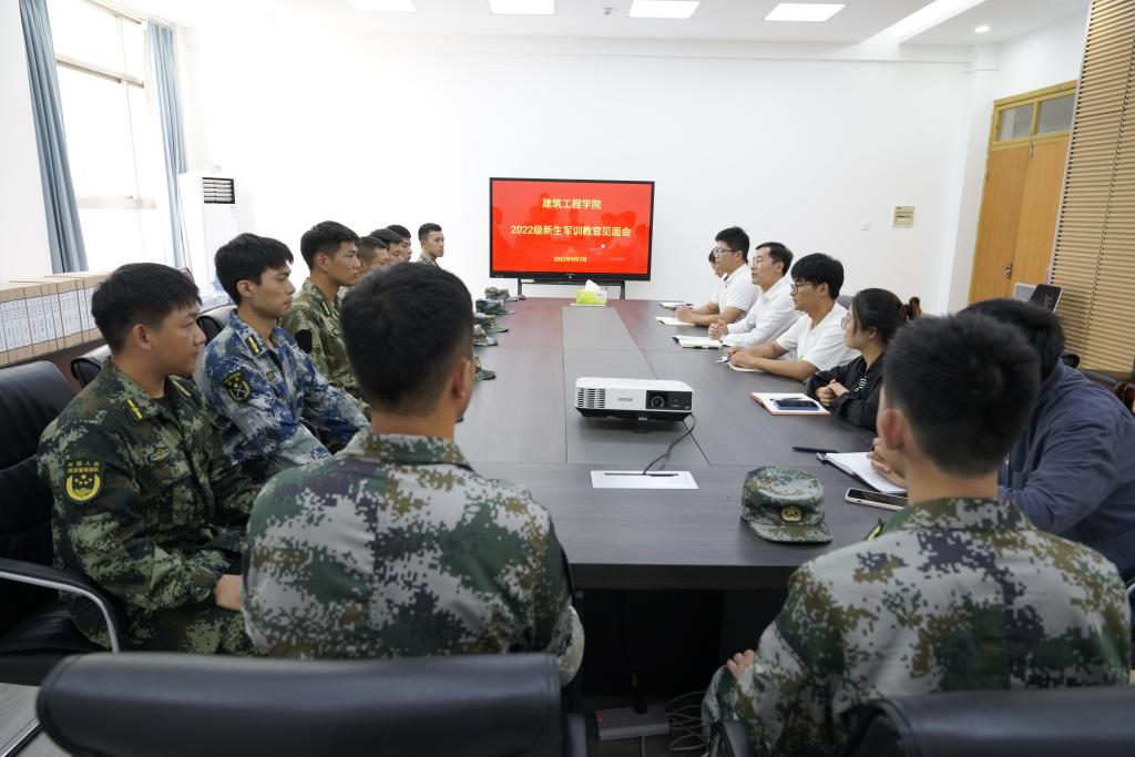 9月7日下午,建筑工程学院2022级新生军训教官见面会在E209举行。学院党委副书记任晨阳,相关辅导员老师们及9位学生教官参加了此次会议。