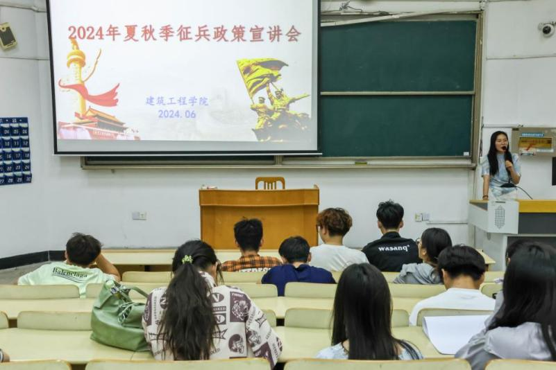 为进一步帮助学生了解国家征兵政策,鼓励和支持广大在校学生积极投身国防事业,发挥高校征兵主阵地作用,建筑工程学院于6月4日召开2024年夏秋季征兵政策宣讲会,有应征入伍意愿学生参加宣讲会,本次活动由辅导员范昕雨主持。