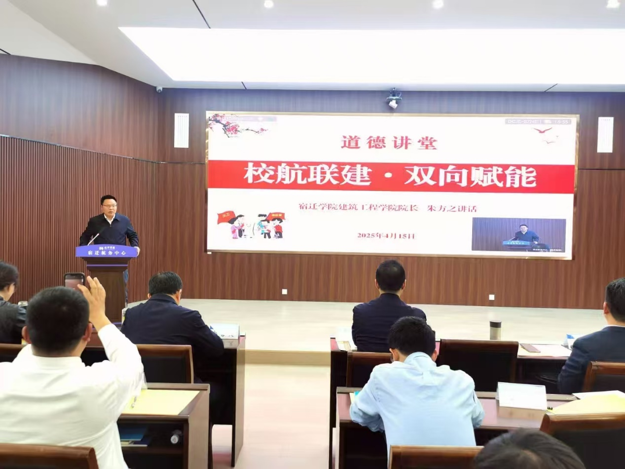 为大力弘扬教育家精神,深化师德师风建设,充分发挥楷模的示范引领作用,4月15日下午,建筑工程学院与宿迁航务中心联合举办“传承运河文脉 唱响水运江苏”主题道德讲堂活动。苏北航务管理处党委委员、纪委书记薛森,宿迁航务中心党委书记、主任徐建昌,建筑工程学院院长朱方之等出席活动。