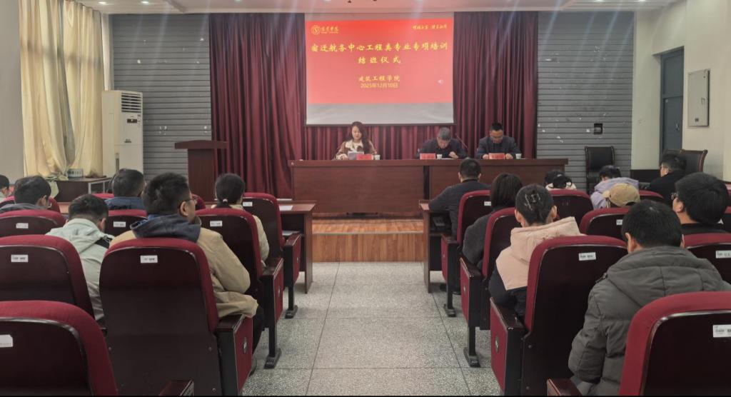 12月10日下午,宿迁航务中心工程类专业专项培训结班仪式在会议室D107圆满举行。建筑工程学院院长朱方之,宿迁航务中心党委副书记、纪委书记江旺林出席仪式。仪式由建筑工程学院工程管理系副主任柏鸽主持。