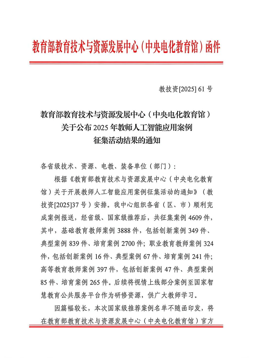 此次案例入选,标志着我院在人工智能与教育教学深度融合方面取得了重要突破。学院将以此为新起点,进一步整合人工智能技术与教学资源,持续赋能教师发展与人才培养,为数字时代高素质人才培育提供坚实支撑。