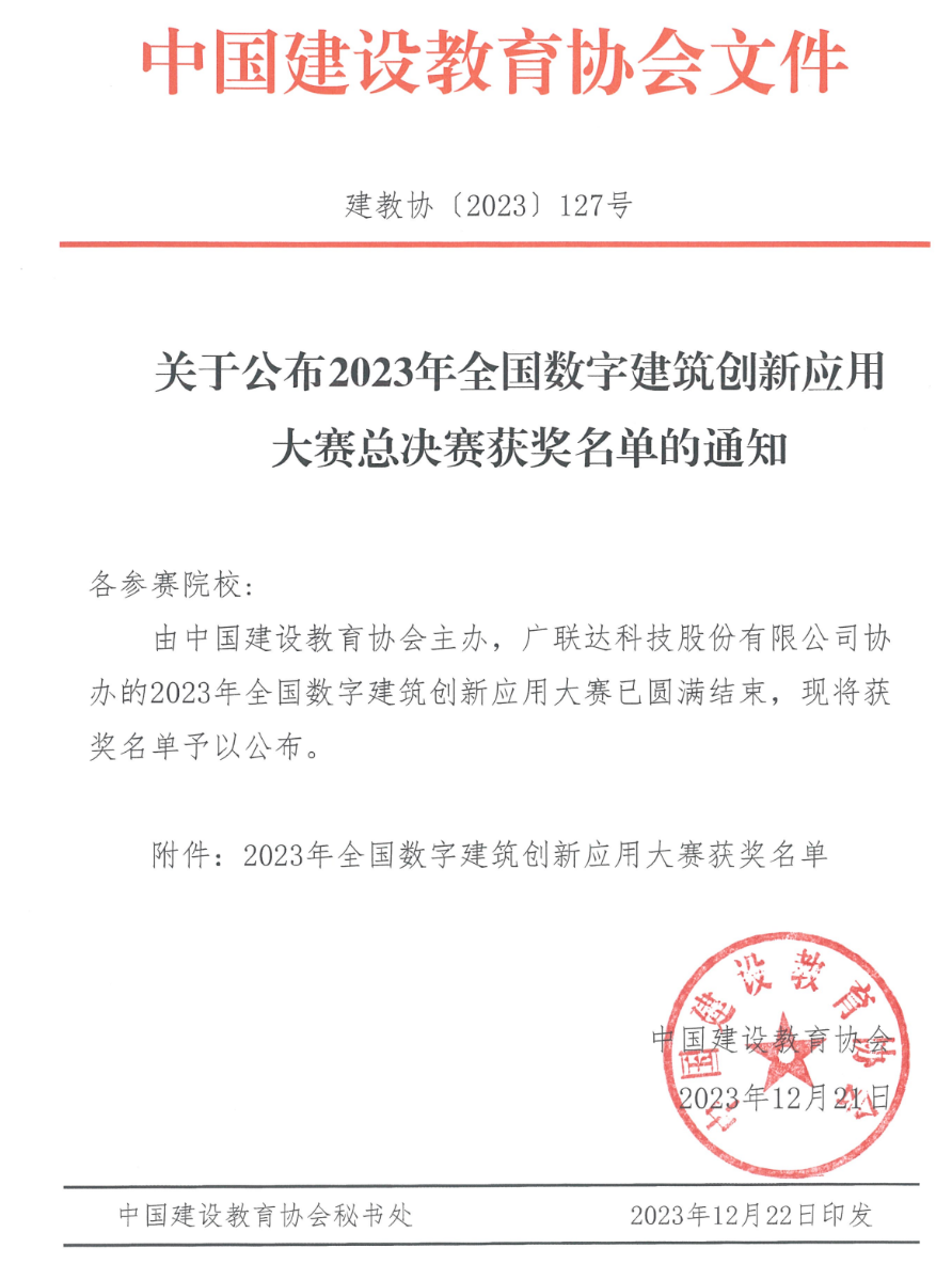 全国数字建筑创新应用大赛是由中国建设教育协会主办,入选中国高等教育学会发布的《全国普通高校学科竞赛排行榜》,属于国家级A类学科竞赛。该赛事贴合建筑类企业岗位技能要求,有利于新形势下更好地发展新技术,促进建筑行业信息化及工业化人才培养。