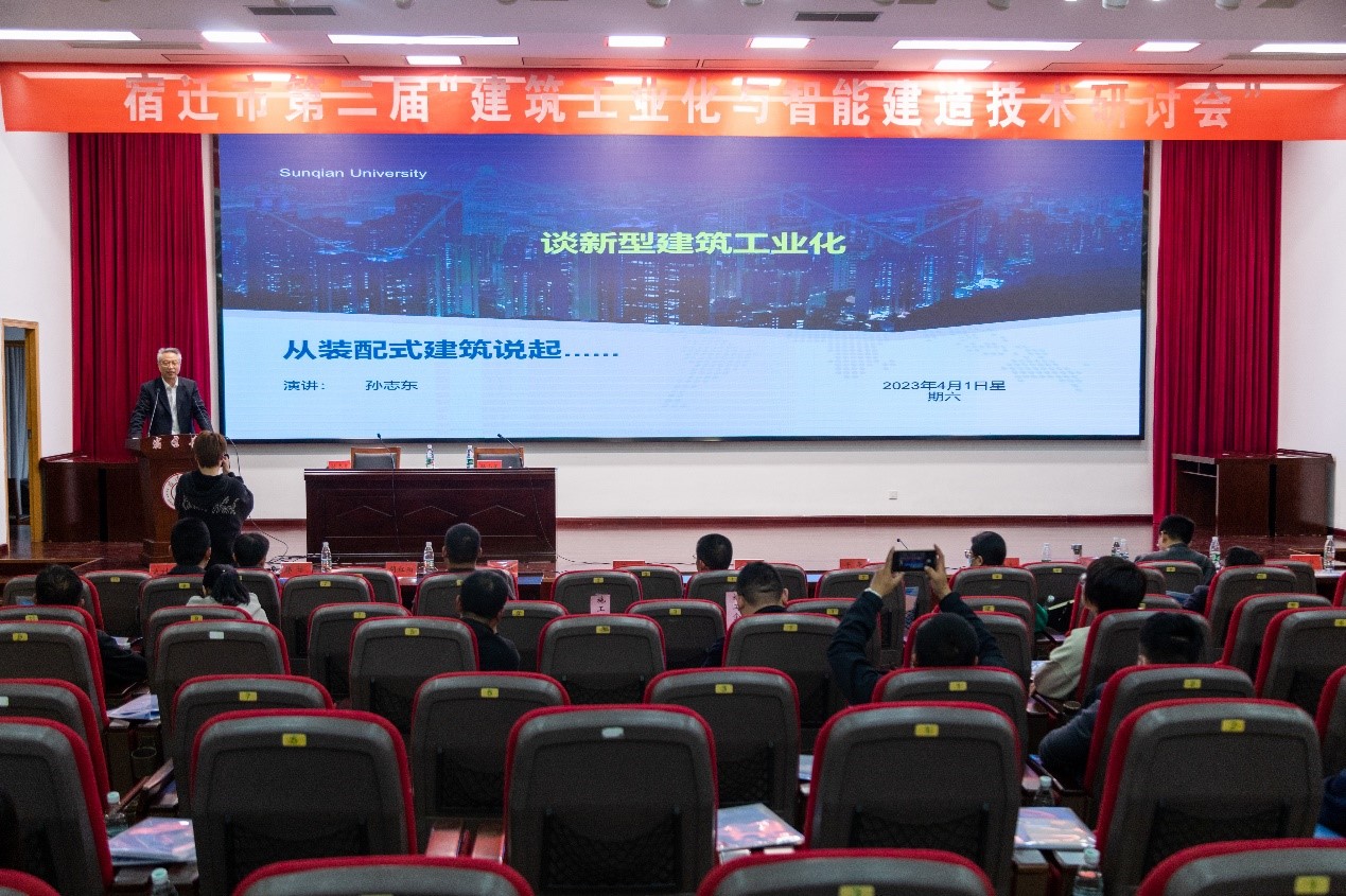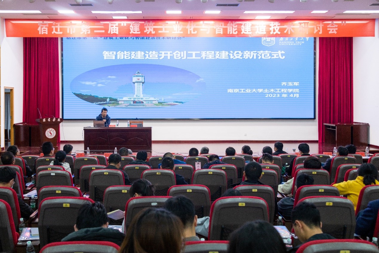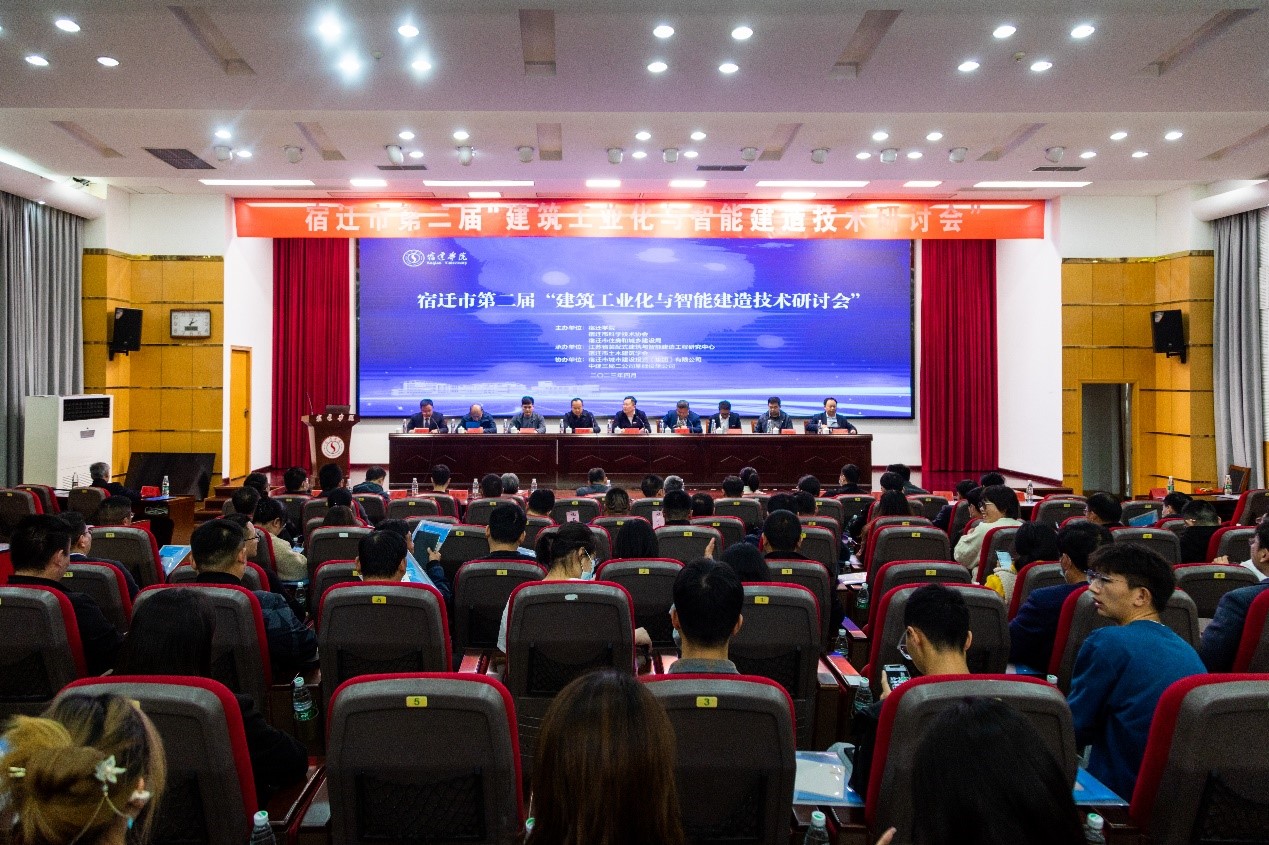 4月1日,由宿迁学院、宿迁市科学技术协会和宿迁市住房和城乡建设局主办,江苏省装配式建筑与智能建造工程研究中心和宿迁市土木建筑学会承办,宿迁市城市建设投资(集团)有限公司和中建三局二公司基础设施公司协办的宿迁市第二届“建筑工业化与智能建造技术研讨会”在宿迁学院求索楼报告厅召开。宿迁学院副校长童毛弟、宿迁市科学技术协会副主席朱虎和宿迁市住房和城乡建设局副局长孙晓林、宿迁学院科技处副处长(主持工作)吕政宝等出席研讨会。全市建筑工程领域企业科技研发人员、宿迁学院建筑工程学院师生代表、市土木建筑学会会员等400余人参加活动。研讨会由建筑工程学院副院长(主持工作)朱方之主持。