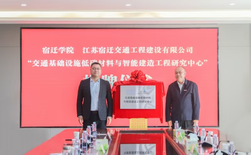 朱文兵和朱方之代表双方签署战略合作协议、共建交通基础设施低碳材料与智能建造工程研究中心协议;朱文兵和郭振宇为交通基础设施低碳材料与智能建造工程研究中心揭牌。交流环节,孙小荣讲解了双落户、科技副总、产业教授等人才政策,针对宿迁交建提出的六方面需求,推介建工学院科研团队。