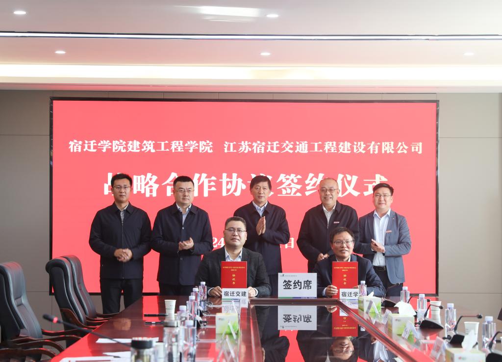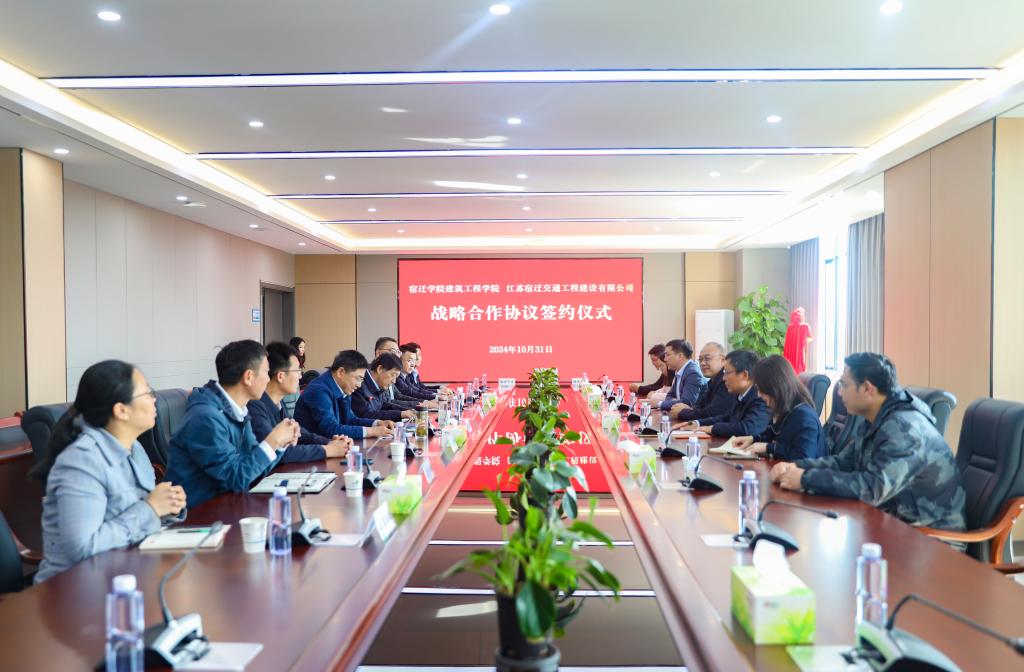 为切实推进产教融合,助力科技成果转化,10月31日,建筑工程学院与江苏宿迁交通工程建设有限公司签订战略合作协议。宿迁交通集团党委委员、副总经理黄雪林,宿迁交建党总支书记、总经理朱文兵,建工院党委书记郭振宇、院长朱方之,校服务地方办公室副主任(主持工作)孙小荣等参加活动。