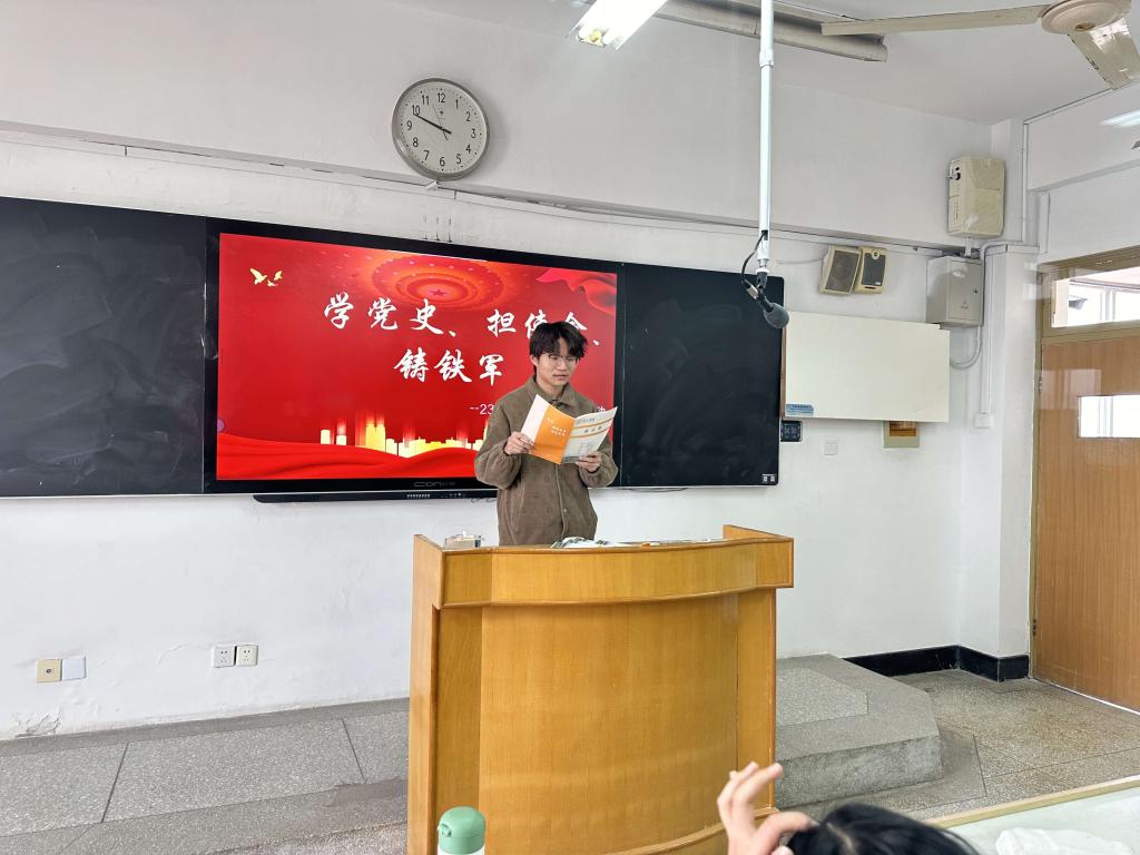 各团支部召开“学党史、担使命、铸铁军”主题班会,团支书详细介绍中国共产党的发展史、奋斗史、成功史及“铁军精神”,促使学生深刻体会中国共产党从萌芽到枝繁叶茂的不易,了解党的奋斗历程与优良传统,引导学生更好地履行历史使命。