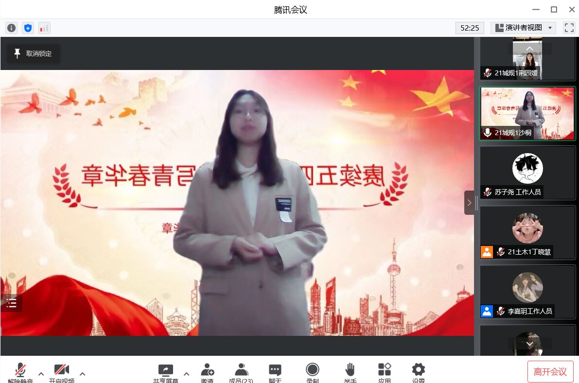 5月2日进行线上决赛,10名参赛选手精神饱满、朝气蓬勃,围绕演讲主题,紧扣身边生动事例,通过配以精心制作的图片、音乐等形式,用朴实的语言,声情并茂地讲述了各自对于五四精神的感悟,并立足个人实际讲述了作为青年人应有的担当。她们时而娓娓道来,时而激情澎湃,一场场演讲,触动人心;一次次肯定,热烈真挚。