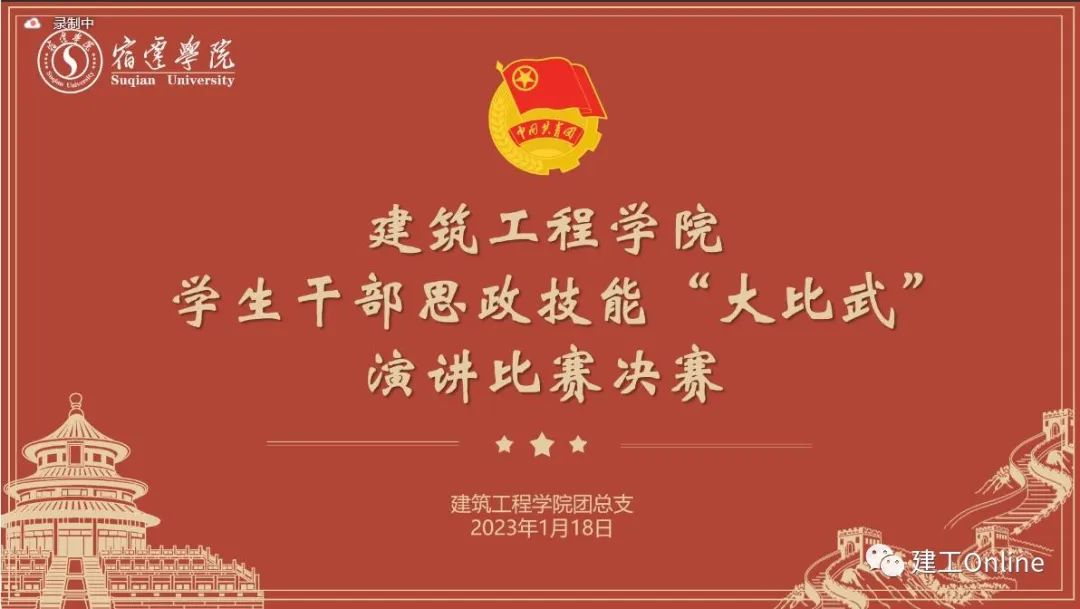 为深入学习贯彻习近平新时代中国特色社会主义思想和党的二十大精神,引导广大学生干部用好寒假宝贵时间学习、思考、沉淀,着力提升学生干部政治理论素养和业务能力,锻造一支政治过硬、能力过硬、素质过硬的学生干部队伍,建筑工程学院团总支于2023年1月18日举行学生干部思政技能“大比武”线上演讲比赛决赛。