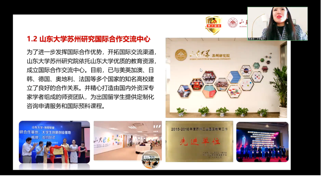 为帮助同学完整了解留学方面的重点内容,拓宽同学们视野,更好面向国际,建筑工程学院于2023年1月12日下午邀请了山东大学苏州研究国际交流中心的苏桑老师以腾讯会议的方式进行宣讲。本次宣讲由建筑工程学院2019级辅导员刘小倩老师主持,建筑工程学院党委副书记任晨阳、辅导员杨茜麟老师、2019级学生参加。