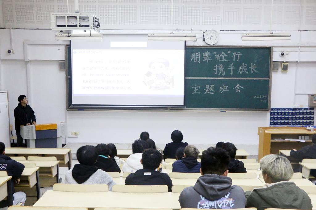 班会第一项议程由副班长朱勇满同学以“热爱生活,‘砼’向未来”为主题向班级同学展示了校园生活的方方面面,重点分析了班级同学的宿舍问题和生活习惯,引导班级同学提高日常生活技能和自我管理能力,进一步增强班级凝聚力。第二项议程由学习委员戈雨晨以“‘砼’心逐梦,终身学习”为主题向班级同学讲述什么是终身学习、为什么要坚持终身学习、终身学习如何实践。通过分析班级四级模考成绩确立学习目标,引导班级同学了解终身学习的目的,不断提高眼界和格局。第三项议程由班长刘博宇以“‘砼’行相助,拒绝摆烂”为主题从什么是摆烂、摆烂的危害、远离摆烂心态三个方面为班级同学进行讲述,以情景剧引入,以提问形式让更多同学参与讨论并分享对于拒绝摆烂的看法。第四项议程由团支书梅冉同学以“畅谈分享,‘砼’力远航”为主题活动,提高班级同学的学习热情,培养班级同学对相关专业竞赛的兴趣。第五项议程由辅导员刘小倩对班会进行点评和总结,鼓励学生应树立明确目标、坚持践行目标、总结调整目标,告知学生应多开展集体班级活动增强班级凝聚力。
