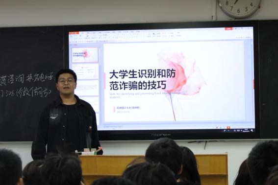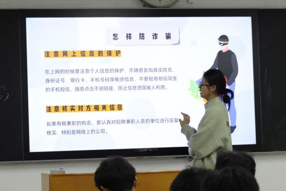 反诈主题宣讲:开学季是学生们重整心态、适应新环境的时候,也是不法分子重点盯上学生的时机。随着科技的发展,电信诈骗问题日益严重,尤其是在学生群体中。宣讲团成员走进2023级学生班级,结合“防范电信诈骗,巩固安全底线”的主题,通过PPT、视频和实例,进行生动的讲解。“诈骗者的成功离不开我们的贪婪和轻信。”一个个具体生动的案例让人痛心、给人警示,提醒学生注意电信诈骗,提高警惕性,并详细介绍如何识别和应对电信诈骗。