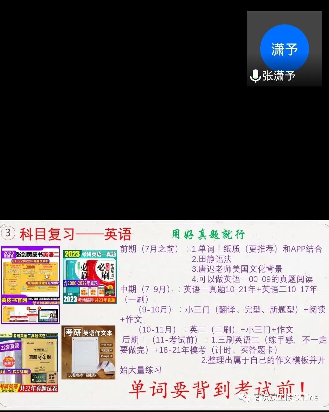 为进一步做好疫情防控下的学生服务工作,促进良好学风、院风的建设,增强同学们的考研信心,建筑工程学院于2022年5月8日分专业会场举办了线上考研交流会。