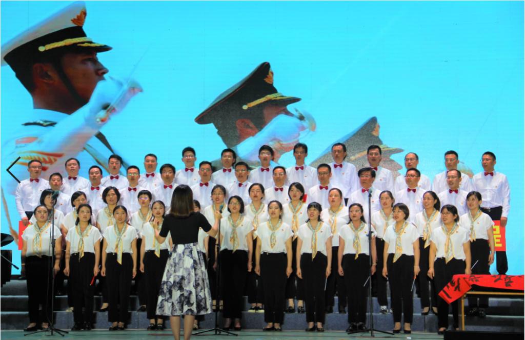 活动现场,一身演出服的老师们,纷纷化身男神女神,唱响党的青春赞歌。其中,建筑工程学院由院长王振波教授与党委书记陈胜雷老师带领45名教师组成合唱队伍,演唱了《我们走在大路上》和《没有共产党就没有新中国》两首歌曲,不仅唱出了红歌特有
