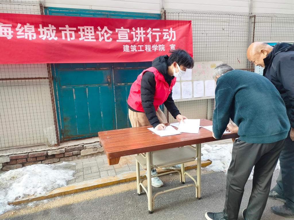 海绵理念共发展,普法知识进社区。“砼星”志愿服务队走进社区,利用展板、宣传册等形式向社区居民科普雨水花园、透水铺装、植草沟等常见海绵设施,解答居民提出的各类问题,引导广大市民正确认识、大力支持、积极参与海绵城市建设。线上发放调查问卷,开展网络调研行动,了解海绵城市建设制度,深化专业融合。