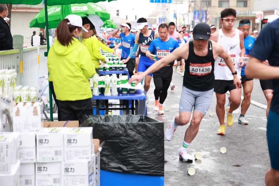 凌晨4点,数百名学生统一着装,蓄势待发。早上5点,学生井然有序在规定地点集合完毕,于黑夜白昼交替中登上接驳车,驶向马拉松赛道补给点。在2.5公里和7.5公里处的赛道一侧,志愿者搬运物资,清洗水果,开始服务准备工作。开赛后,志愿者用饱满的热情为参赛选手呐喊助威。在赛道补水站、喷淋站、能量补给站等多个岗位中,志愿者的身影在人群中成为一道亮丽的风景线。