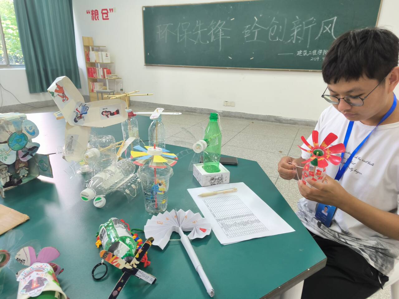 随着社会环保意识的日益增强,人们生活水平也发生了日新月异的变化,物质需求不断提高,随之而来是大量废弃物的产生,因此,节约资源,实现资源循环利用显得尤为重要。建筑工程学院分团委于2024年9月25日开展“环保先锋,‘砼’创新风”简易风扇设计活动,它既是创意的展示,也是环保理念的深入实践。本活动旨在创作可回收材料和废弃物为主要材料的简易风扇,倡导绿色、环保、可持续的发展理念。