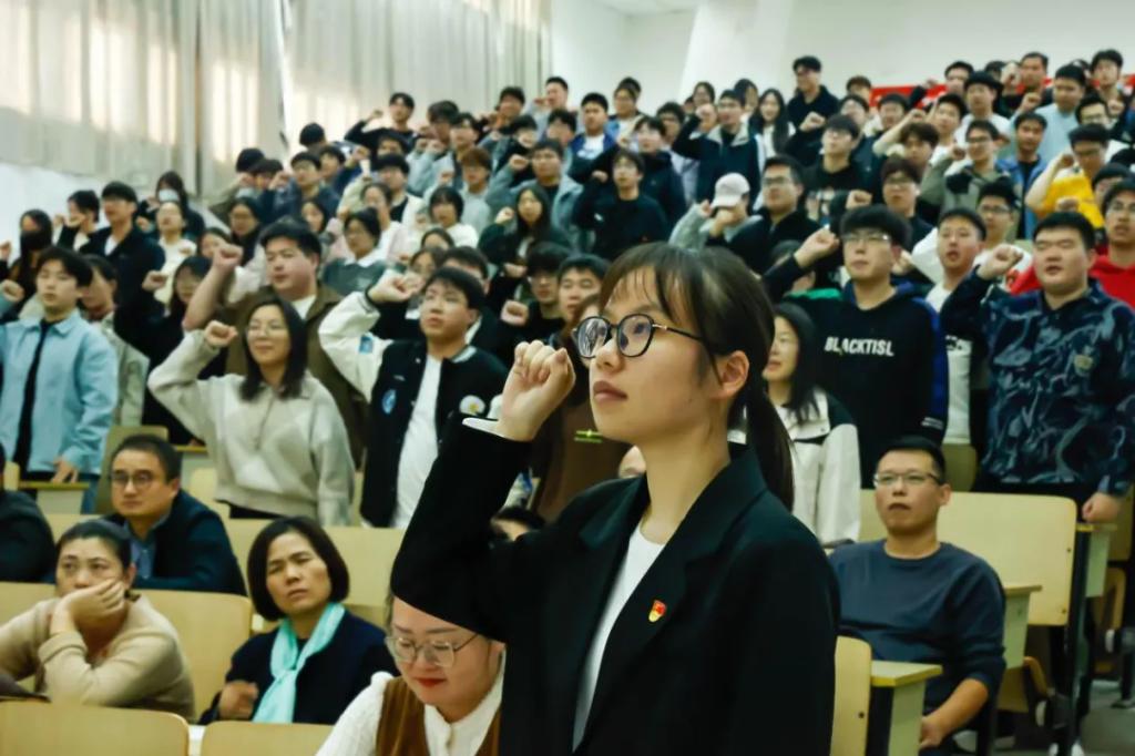 誓师大会现场,全体考研学子郑重宣誓。“我将用知识的光芒照亮前行的道路,用毅力的火焰驱散所有的迷茫,不辜负青春的梦想。”
