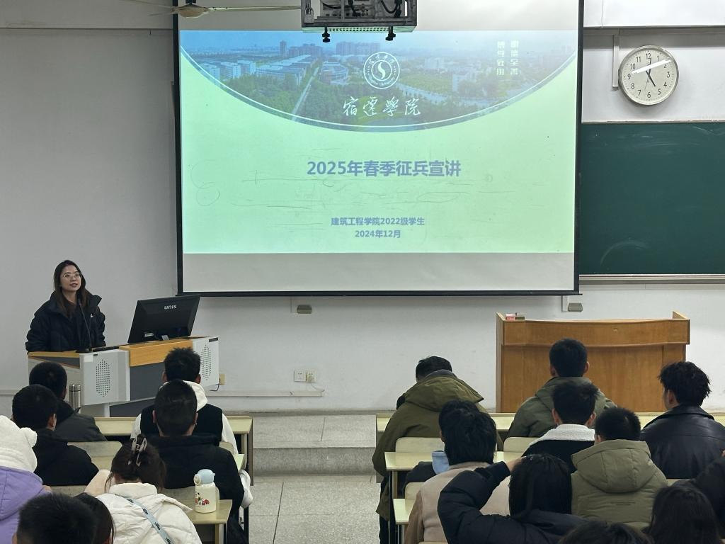 为积极响应党和国家号召,扎实开展2025年春季征兵宣传工作,使学生及时了解征兵相关的内容及政策,进一步激发学生的应征热情,12月5日至20日,建筑工程学院各年级组织开展2025年春季征兵宣讲会。