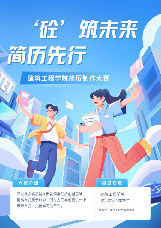 为激发同学们的创新思维,提高自我展示能力,提升学生的简历制作能力,增强就业竞争力,建筑工程学院学生会于2024年10月14日举办了“‘砼’筑未来,简历先行”简历制作大赛,建筑工程学院2022级学生参与比赛。