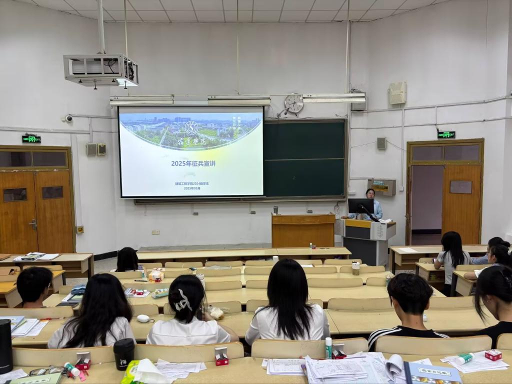 为积极响应党和国家号召,扎实开展2025年夏秋季征兵宣传工作,使学生及时了解征兵相关的内容及政策,进一步激发学生的应征热情,建筑工程学院各年级组织召开“火热军营 精彩人生”主题班会。