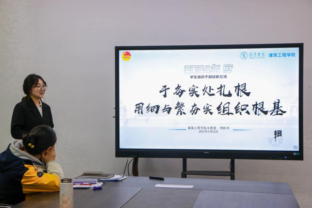 各学生组织主要负责人依次围绕上一年度工作履职情况、工作成效与亮点、工作现存问题以及2025年度工作规划等方面进行详细阐述,结合专业学习与工作实际,谈收获成长、谈工作任务。各学生组织将继续践行“为同学服务”的宗旨,以饱满热情和昂扬姿态迎接新的挑战。