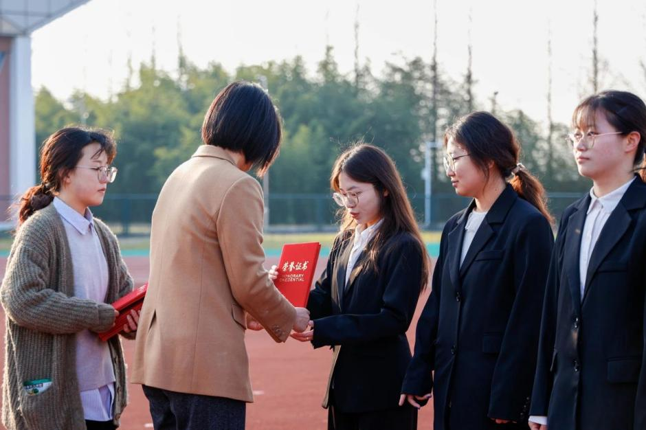 在热烈的掌声中,建筑工程学院党委副书记倪春艳和学工办主任吉祥老师庄重地将荣誉证书颁到十佳百优志愿者手中,激励青年学子以这些身边的楷模为标杆,踊跃投身志愿服务的浪潮,让奉献、友爱、互助、进步的志愿精神落地生根。