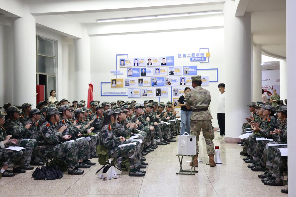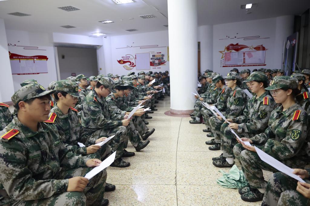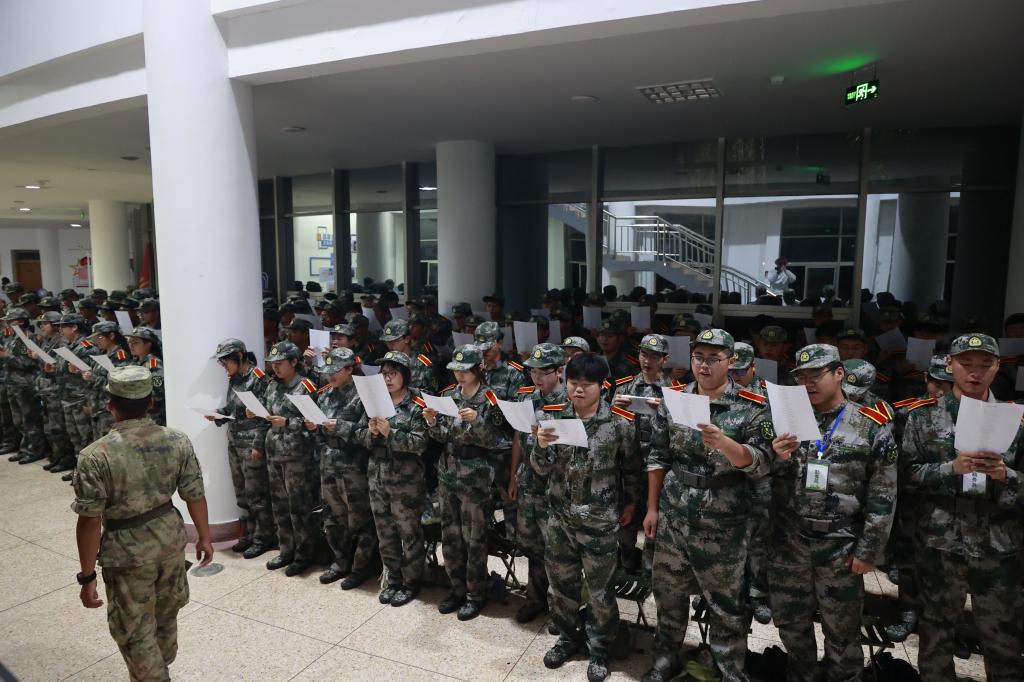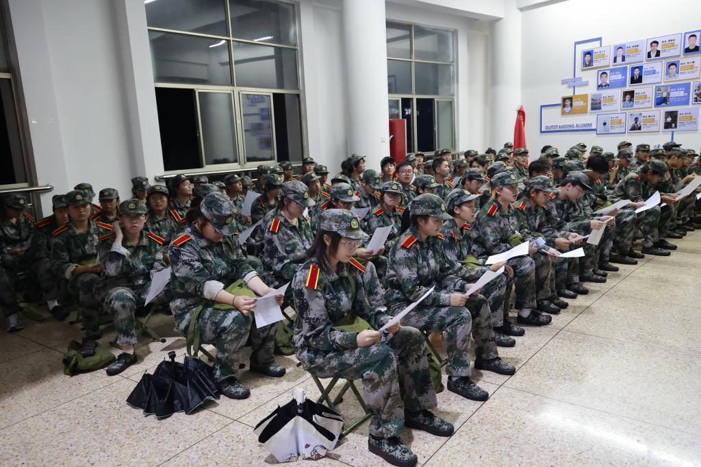除常规军事训练外,各连队依托院办环境,积极开展军歌教唱与思想政治教育活动。教官利用训练间隙组织同学们学唱红色歌曲、分享军旅故事,在歌声中凝聚力量、提振士气。一首首铿锵有力的军歌,不仅缓解了连续训练的疲惫,更增强了队伍的凝聚归属感,实现了“以歌促训、以训育魂”的效果。