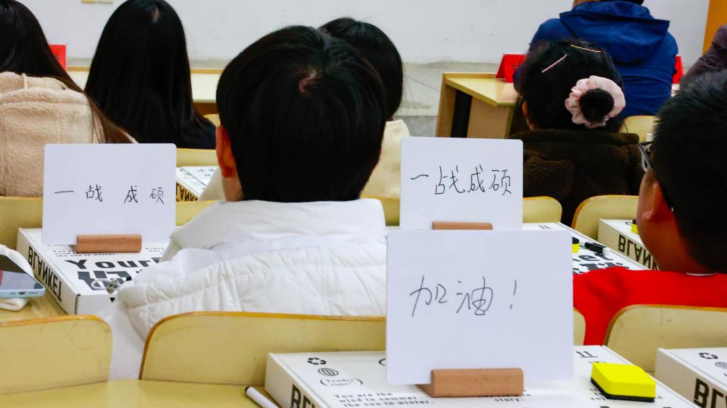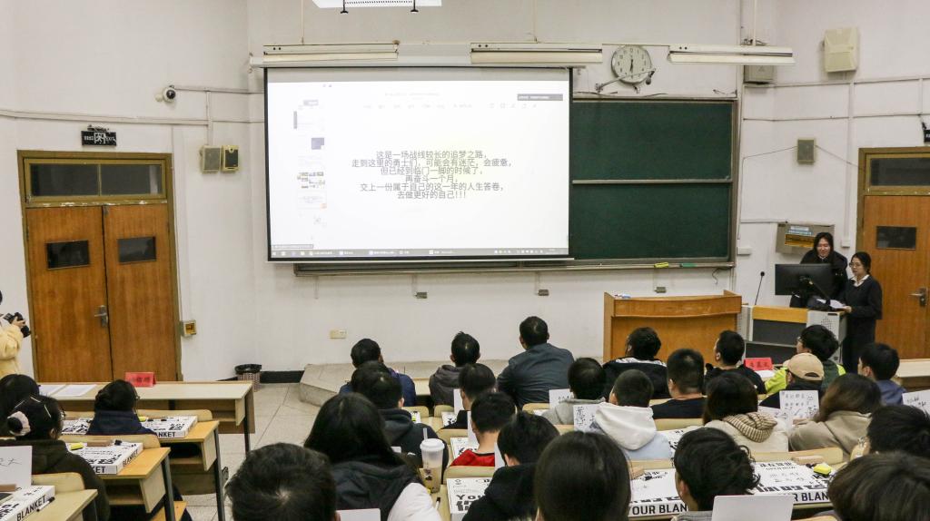 学院为考研学子送上暖心礼品,为同学们加油打气。“上岸”暖心毯——抵御冬夜寒意,包裹温暖力量;桌面白板——记录每日目标,书写初心梦想。同学们在白板上书写寄语与目标院校,让心愿随笔墨凝聚,伴冲刺之路前行。誓师大会现场,全体考研学子郑重宣誓。