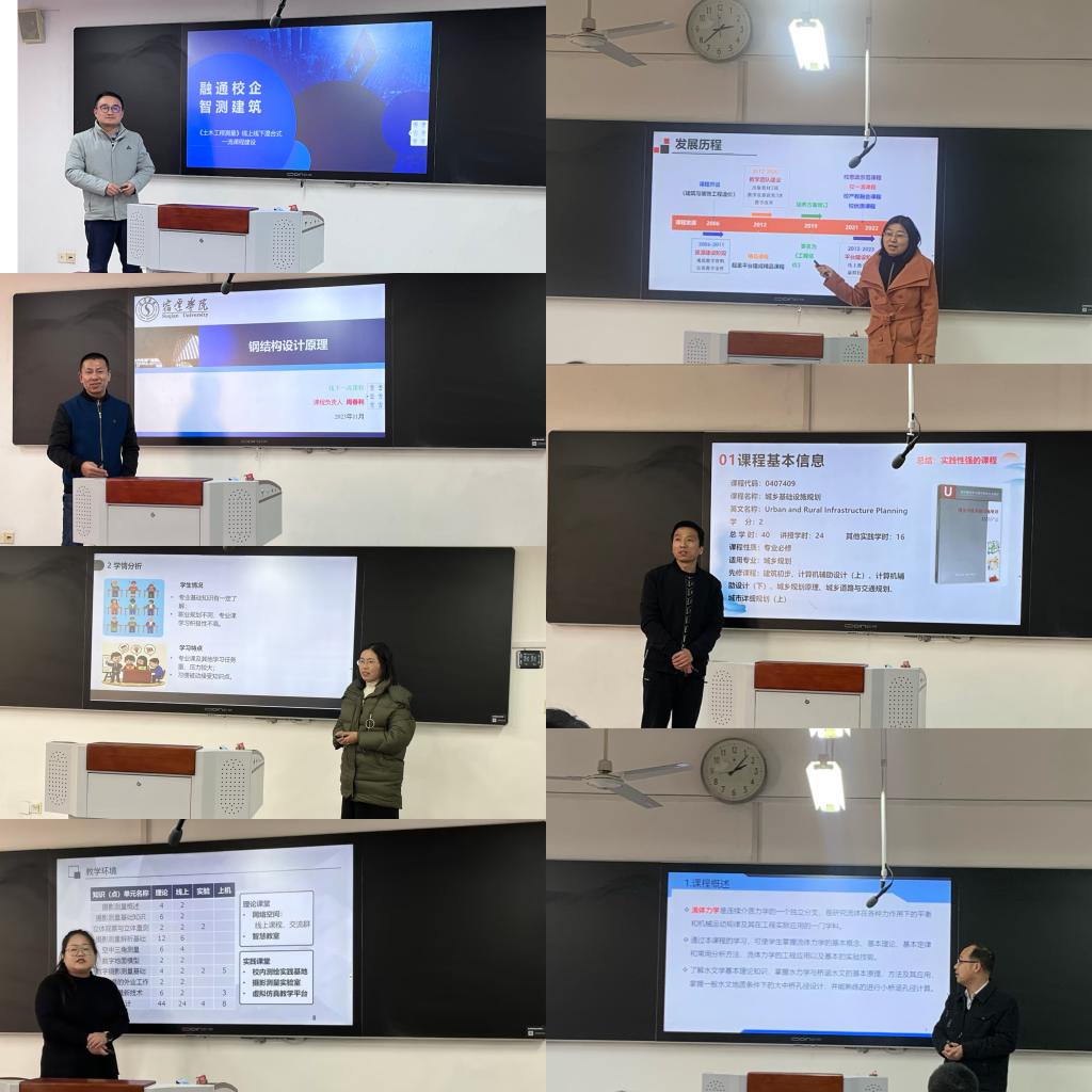 以“说”展风采。土木工程系周春利、工程管理系马静和段媛媛、交通工程系刘锋、测绘工程系孟丽媛和郭冰、城乡规划系段卫国七位教师分别从课程性质与定位、课程目标、教学设计思路、教学环境、教学方法、创新特色和教学效果评价等方面展开说课,充分展示了各课程的建设发展历程、教学内容重塑、教学方法创新、教学资源建设、教学评价改革和教学实施成效等情况,可谓门门有亮点、课课有创新,尽显我院教师的教学风采。