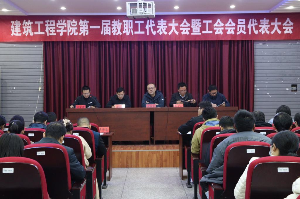 2022年11月22日下午,建筑工程学院在院办D107召开第一届教职工代表大会第一次会议暨工会代表大会第一次会议,会议由学院党委书记郭振宇主持,学院领导班子及全体教职工参加了会议。