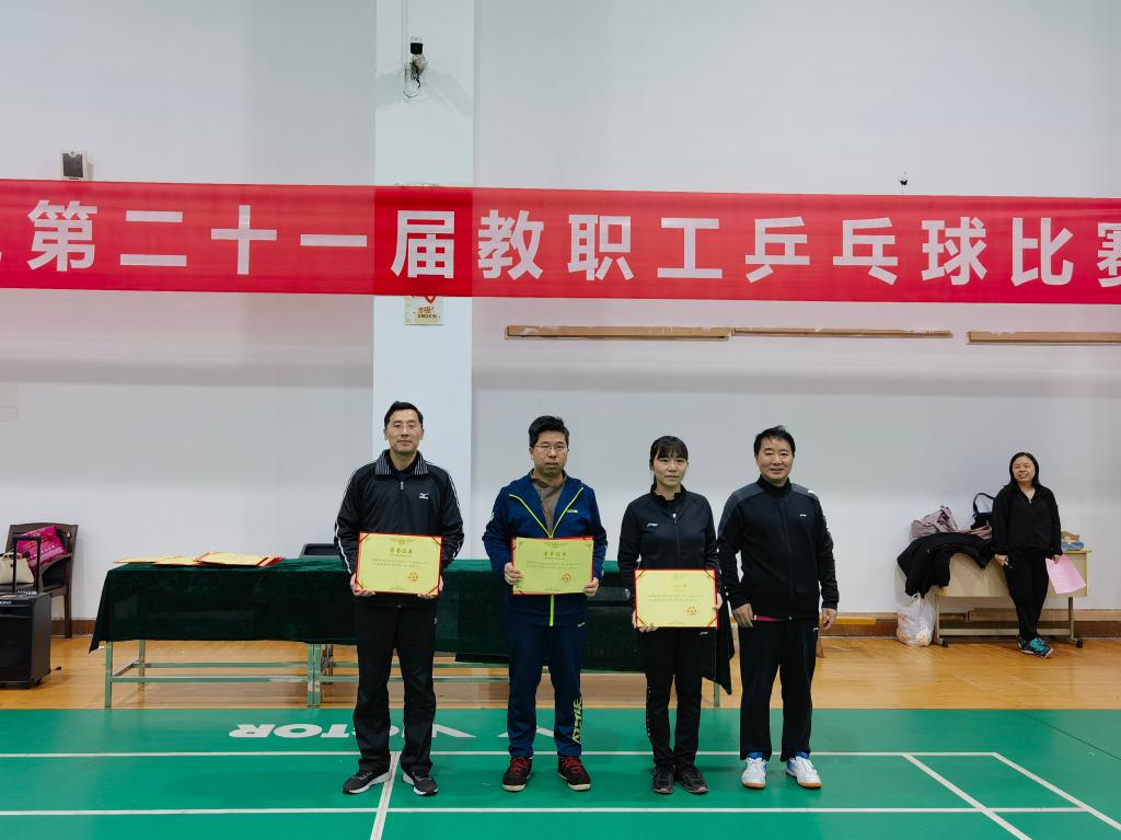 11月11-13日,我校工会在校体育馆举办了第二十一届教职工乒乓球比赛。建筑工程学院教职工乒乓球代表队在党委书记郭振宇的带领下奋勇拼搏,荣获混合团体乙组冠军,创造建院20年以来最好成绩,党委副书记任晨阳荣获普通组男子单打冠军。