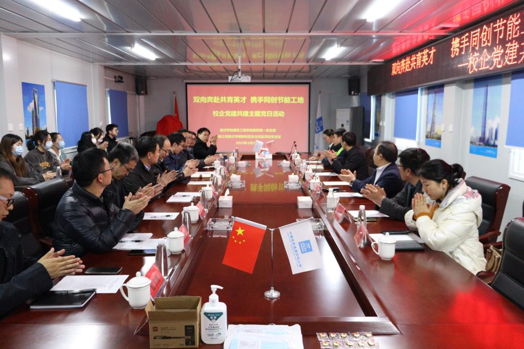 3月25日,宿迁学院建筑工程学院教师第一党支部和铁军班学生联合中建三局开展“双向奔赴共育英才,携手同创节能工地”主题党日活动,建筑工程学院党委书记郭振宇,副书记任晨阳,青年博士代表,中建三局二公司基础设施公司副总经理、总工程师陈鹏及新校区东北校区项目全体党员及项目班子成员齐聚宿迁学院新校区东北校区项目部,以深化支部共建合作,加强人才培养与交流,业务共促共赢为目的携手开展了党建共建活动。