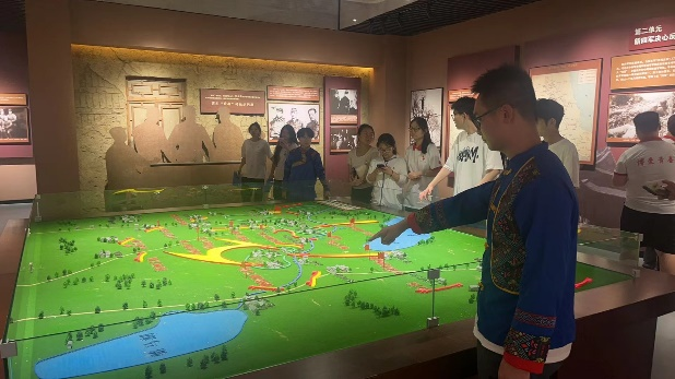 建筑工程学院同学及少数民族同学代表走进宿迁当地红色文化纪念馆,学习革命先辈艰苦奋斗的奉献精神,直观感受宿迁历史文化的厚重与多彩,感悟汉族多元文化内涵,促进各民族学生交往交流交融。