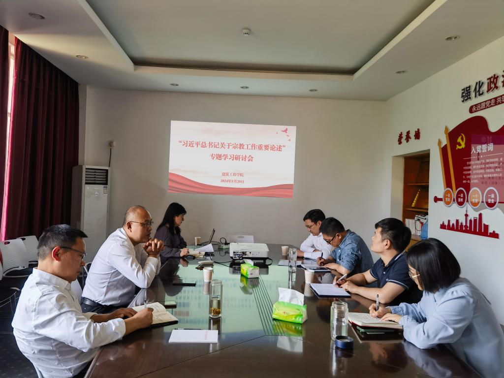 5月29日,建筑工程学院为深入学习贯彻习近平总书记关于宗教工作的重要论述和全国宗教工作会议精神,以及2018年以来中央领导同志关于宗教工作的重要指示批示,召开专题学习研讨会。会议由学院党委书记主持,学院领导班子成员参加了此次研讨会。