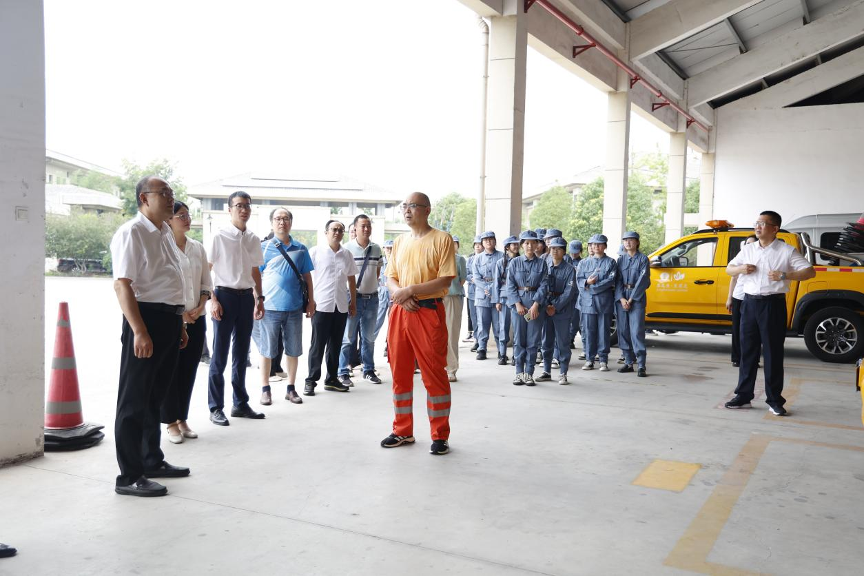 师生们实地走访养护工区,在工作人员的专业讲解下,大家了解了高速公路日常养护的具体流程和操作规范。大家还参观了高速公路养护的特种车辆,如清障车、清扫车、除雪车、护栏清洗车等。双方就高速公路养护管理中的经验、遇到的问题及解决方法进行交流分享。